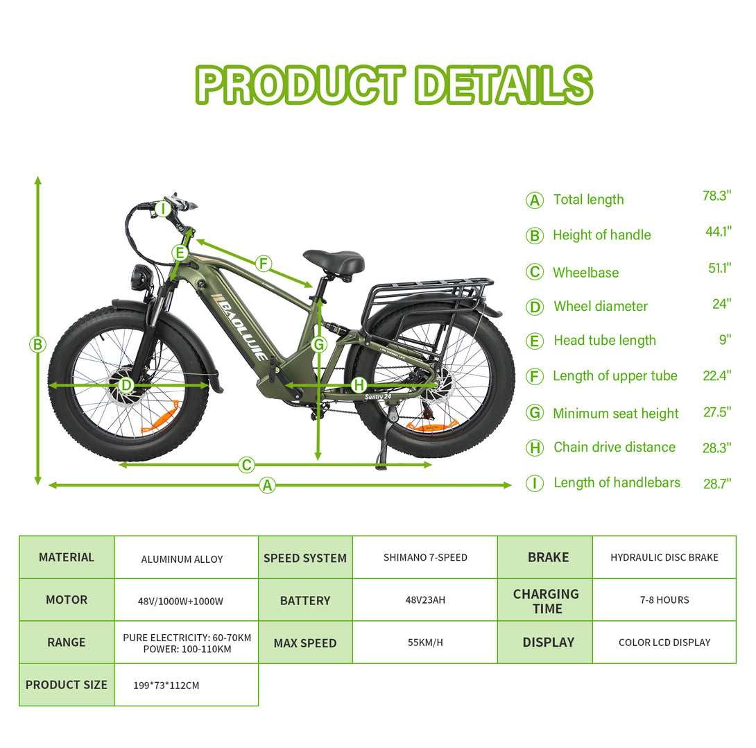 - 【Dual Motor Dominance: Conquer Any Terrain with 2000W Peak Power】 Experience unparalleled all-terrain performance with dual 52V 1000W motors (2000W combined peak). This system delivers exceptional torque for effortlessly tackling steep hills, sand, or trails, providing a significant power advantage over single-motor e-bikes for a smoother, more controlled ride.